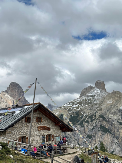 This morning the group will wake up early to a filling breakfast. Then it will be time for the first day hike of the trip: Tre Cime di Lavaredo, which translates to "three peaks" after the distinctive rock formation this hike loops around.
